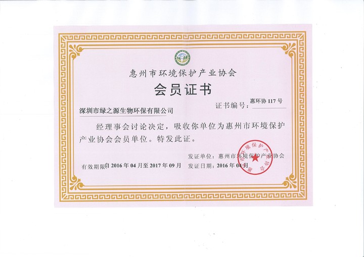惠州市環(huán)境保護產(chǎn)業(yè)協(xié)會會員